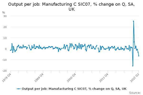 Download this time seriesOutput per job: Manufacturing C SIC07, % change on Q, SA, UK