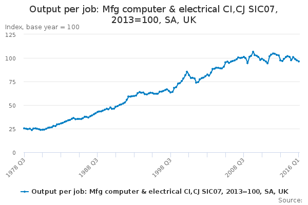 Download this time seriesOutput per job: Mfg computer & electrical CI,CJ SIC07, 2013=100, SA, UK