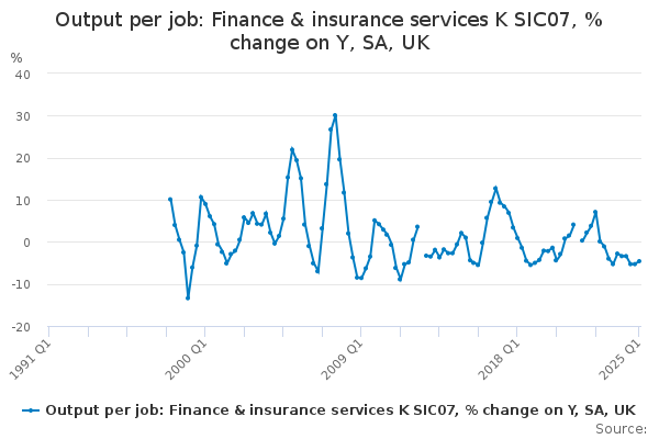Download this time seriesOutput per job: Finance & insurance services K SIC07, % change on Y, SA, UK