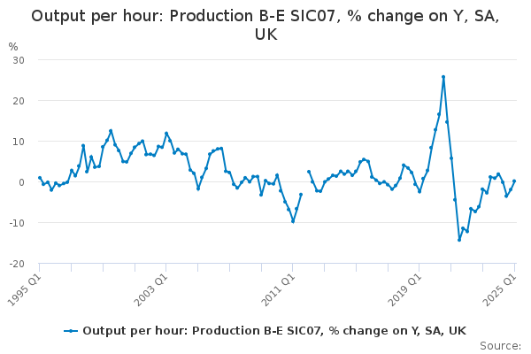 Download this time seriesOutput per hour: Production B-E SIC07, % change on Y, SA, UK