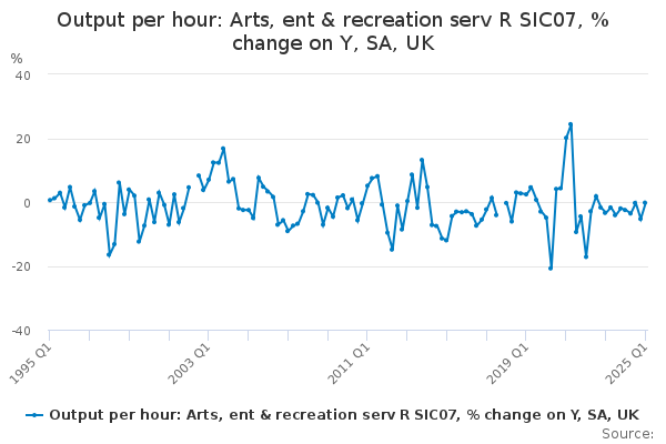 Download this time seriesOutput per hour: Arts, ent & recreation serv R SIC07, % change on Y, SA, UK