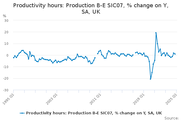 Download this time seriesProductivity hours: Production B-E SIC07, % change on Y, SA, UK