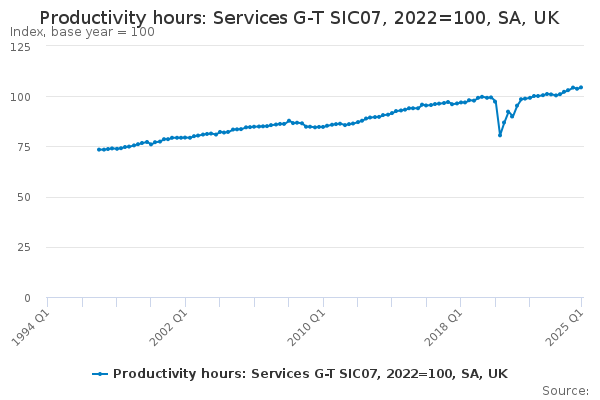 - LNNM - Productivity jobs: Whole economy SA: Index 2023=100: UK