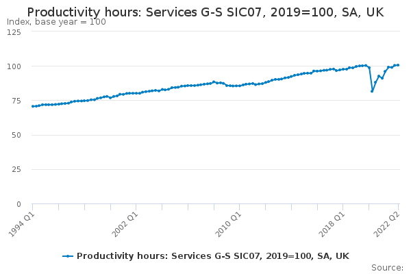Download this time seriesProductivity hours: Services G-S SIC07, 2019=100, SA, UK