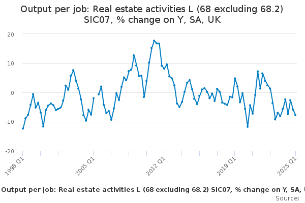 Download this time seriesOutput per job: Real estate activities L (68 excluding 68.2) SIC07, % change on Y, SA, UK