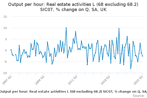 Download this time seriesOutput per hour: Real estate activities L (68 excluding 68.2) SIC07, % change on Q, SA, UK