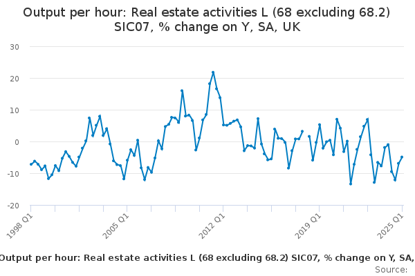 Download this time seriesOutput per hour: Real estate activities L (68 excluding 68.2) SIC07, % change on Y, SA, UK