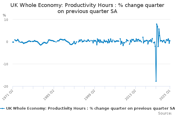 We are updating our output per hour productivity estimates published as part of the Productivity Overview, UK, April to June 2022. The updated data takes on board reweighted labour force survey data for Quarter 2 (Apr to June) 2021 to Quarter 4 (Oct to Dec) 2021 which had previously not been picked up by our systems due to a technical issue. Output per hour worked relative to the 2019 average grew by 1.7% and not 1.8% as originally estimated. There are no revisions to the output per job and output per worker datasets.