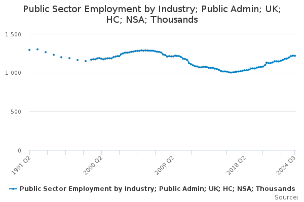 Download this time seriesPublic Sector Employment by Industry; Public Admin; UK; HC; NSA; Thousands