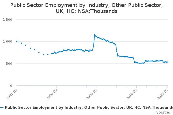 Download this time seriesPublic Sector Employment by Industry; Other Public Sector; UK; HC; NSA;Thousands