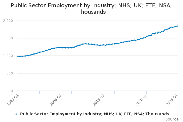 Download this time seriesPublic Sector Employment by Industry; NHS; UK; FTE; NSA; Thousands