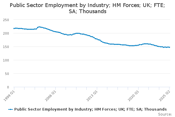 Download this time seriesPublic Sector Employment by Industry; HM Forces; UK; FTE; SA; Thousands