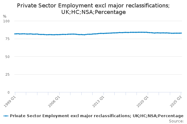 Download this time seriesPrivate Sector Employment excl major reclassifications; UK;HC;NSA;Percentage