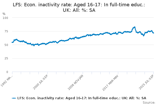 Download this time seriesLFS: Econ. inactivity rate: Aged 16-17: In full-time educ.: UK: All: %: SA