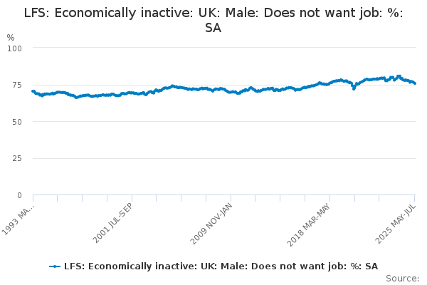Download this time seriesLFS: Economically inactive: UK: Male: Does not want job: %: SA