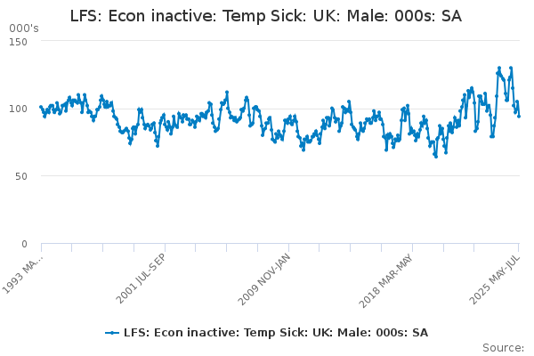 Download this time seriesLFS: Econ inactive: Temp Sick: UK: Male: 000s: SA