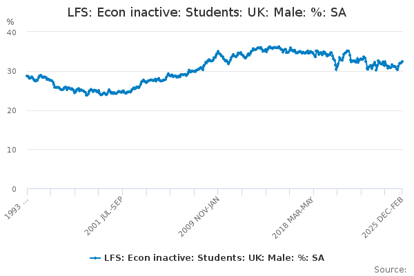 Download this time seriesLFS: Econ inactive: Students: UK: Male: %: SA