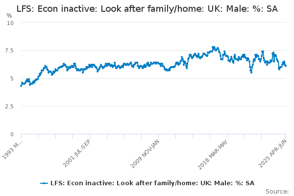 Download this time seriesLFS: Econ inactive: Look after family/home: UK: Male: %: SA
