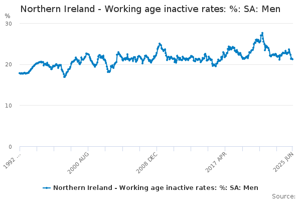 Download this time seriesNorthern Ireland - Working age inactive rates: %: SA: Men