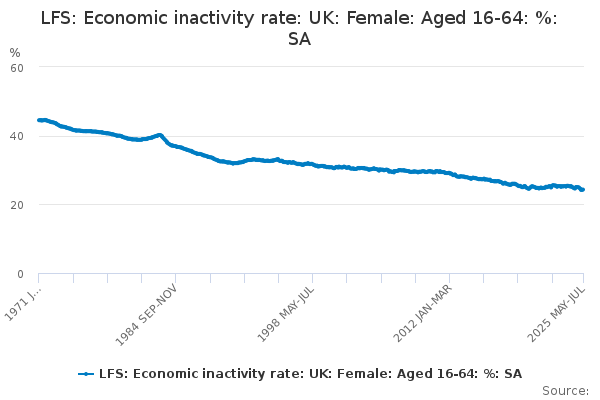 Download this time seriesLFS: Economic inactivity rate: UK: Female: Aged 16-64: %: SA