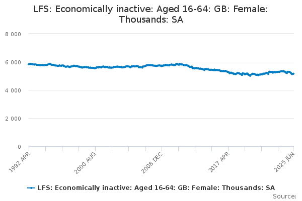 Download this time seriesLFS: Economically inactive: Aged 16-64: GB: Female: Thousands: SA