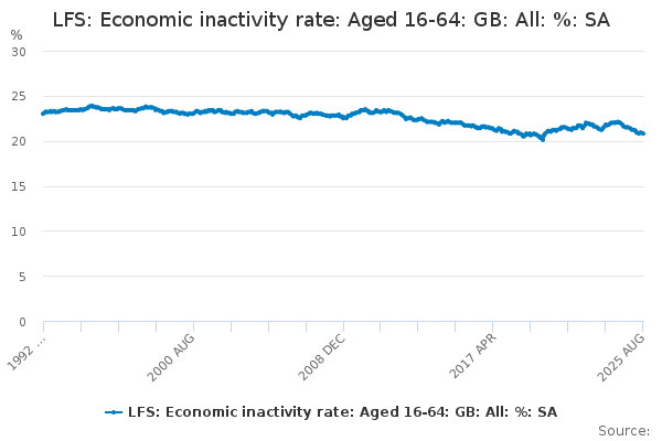 Download this time seriesLFS: Economic inactivity rate: Aged 16-64: GB: All: %: SA