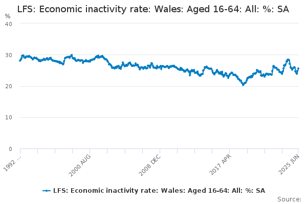 Download this time seriesLFS: Economic inactivity rate: Wales: Aged 16-64: All: %: SA