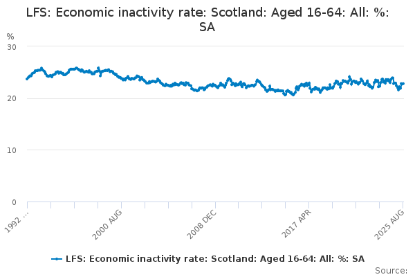 Download this time seriesLFS: Economic inactivity rate: Scotland: Aged 16-64: All: %: SA