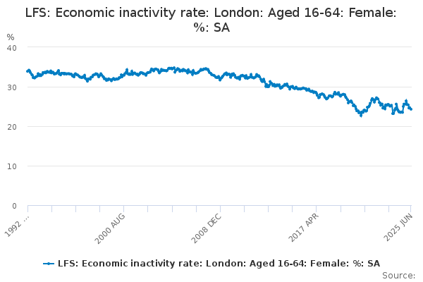 Download this time seriesLFS: Economic inactivity rate: London: Aged 16-64: Female: %: SA