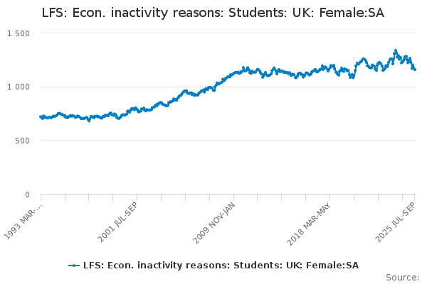 Download this time seriesLFS: Econ. inactivity reasons: Students: UK: Female:SA