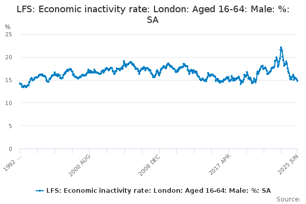 Download this time seriesLFS: Economic inactivity rate: London: Aged 16-64: Male: %: SA