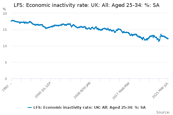 Download this time seriesLFS: Economic inactivity rate: UK: All: Aged 25-34: %: SA