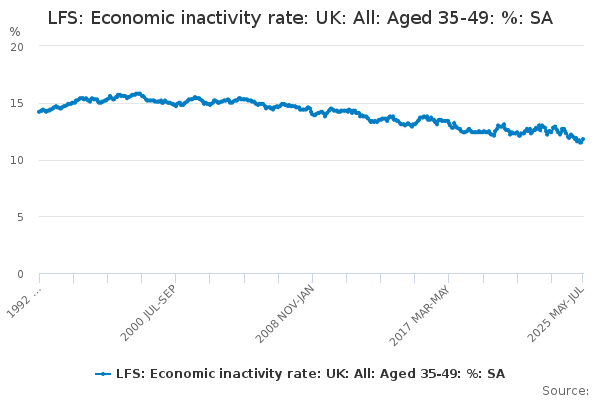 Download this time seriesLFS: Economic inactivity rate: UK: All: Aged 35-49: %: SA