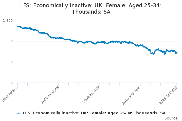 Download this time seriesLFS: Economically inactive: UK: Female: Aged 25-34: Thousands: SA