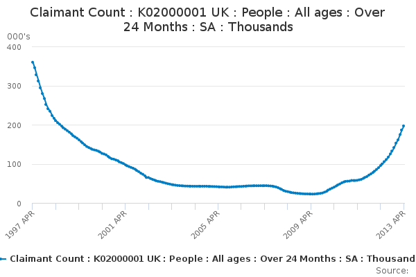 Download this time seriesClaimant Count : K02000001 UK : People : All ages : Over 24 Months : SA : Thousands