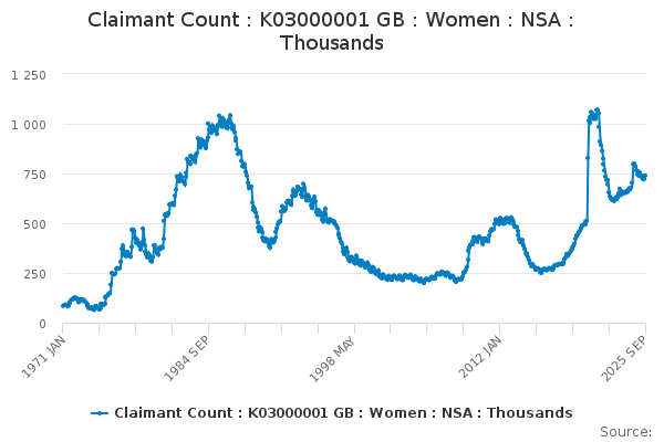 Download this time seriesClaimant Count : K03000001 GB : Women : NSA : Thousands