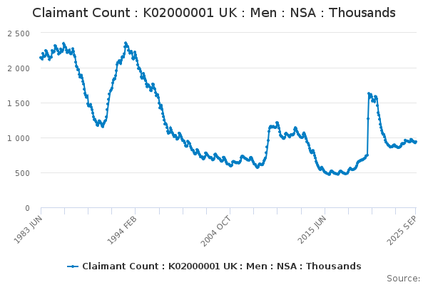 Download this time seriesClaimant Count : K02000001 UK : Men : NSA : Thousands