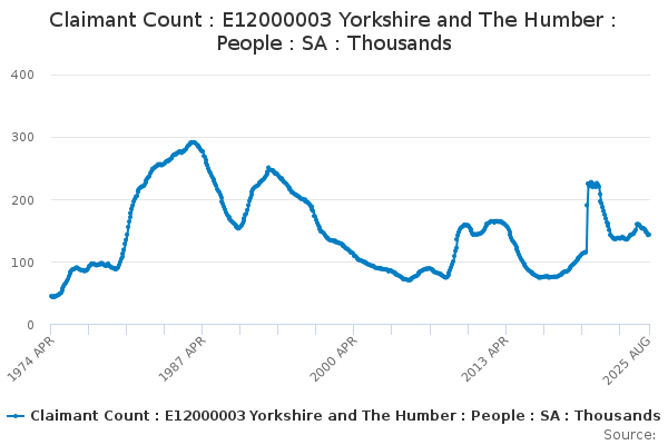 Download this time seriesClaimant Count : E12000003 Yorkshire and The Humber : People : SA : Thousands