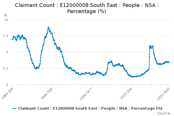 Download this time seriesClaimant Count : E12000008 South East : People : NSA : Percentage (%)