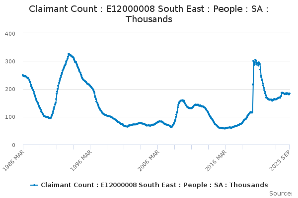 Download this time seriesClaimant Count : E12000008 South East : People : SA : Thousands