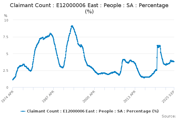Download this time seriesClaimant Count : E12000006 East : People : SA : Percentage (%)