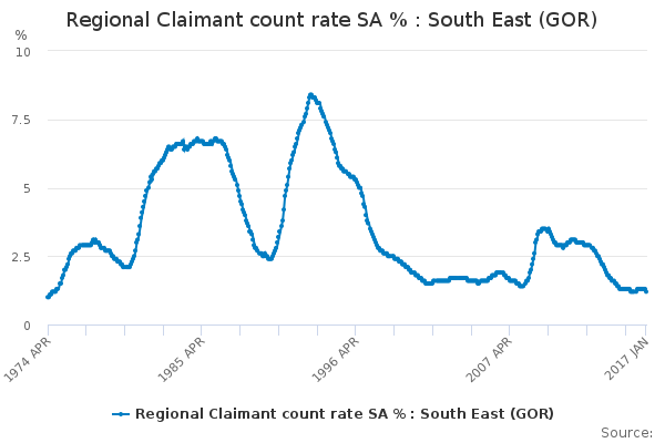 Download this time seriesRegional Claimant count rate SA % : South East (GOR)