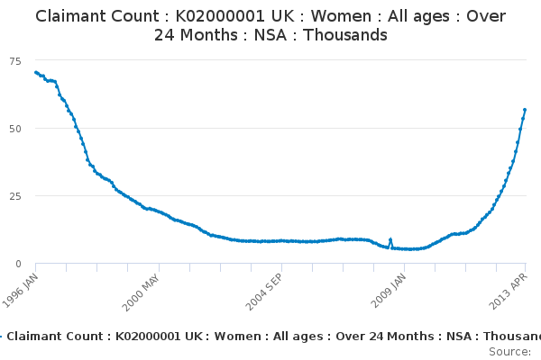 Download this time seriesClaimant Count : K02000001 UK : Women : All ages : Over 24 Months : NSA : Thousands