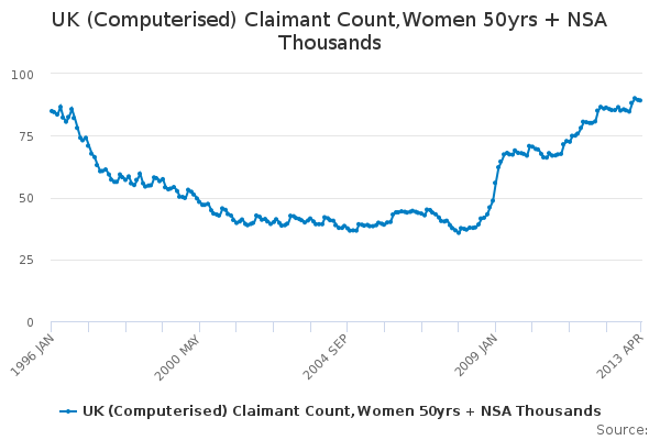 Download this time seriesUK (Computerised) Claimant Count,Women 50yrs + NSA Thousands