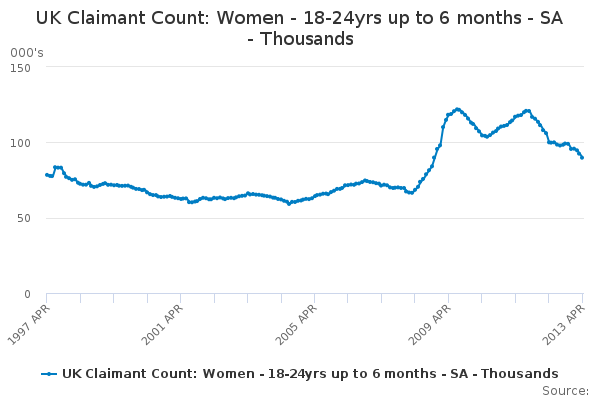 Download this time seriesUK Claimant Count: Women - 18-24yrs up to 6 months - SA - Thousands