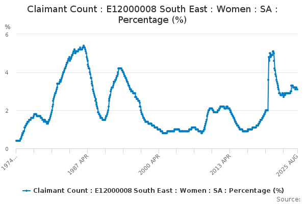 Download this time seriesClaimant Count : E12000008 South East : Women : SA : Percentage (%)
