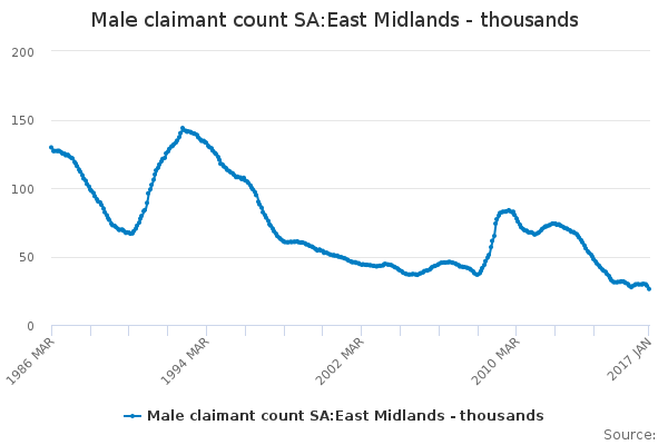 Download this time seriesMale claimant count SA:East Midlands - thousands
