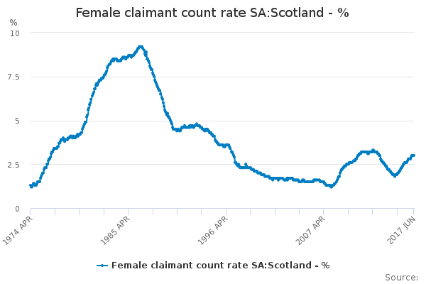 Download this time seriesFemale claimant count rate SA:Scotland - %