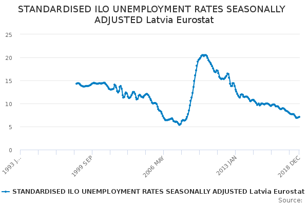 Download this time seriesSTANDARDISED ILO UNEMPLOYMENT RATES SEASONALLY ADJUSTED Latvia Eurostat