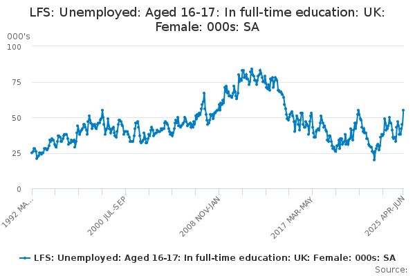Download this time seriesLFS: Unemployed: Aged 16-17: In full-time education: UK: Female: 000s: SA
